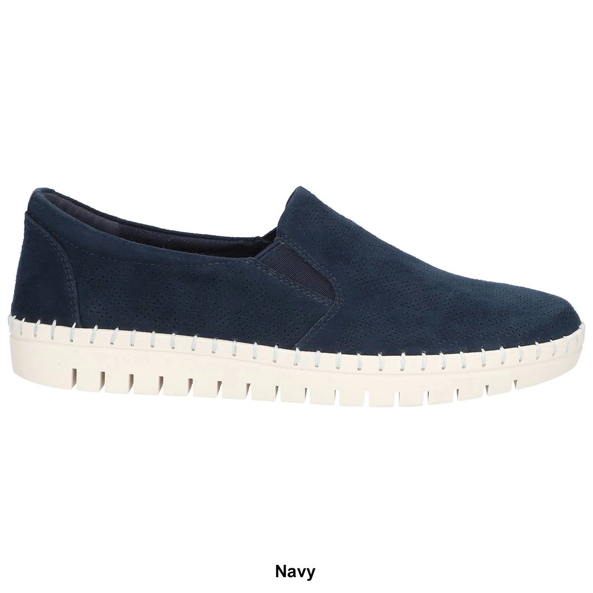 These Womens Bella Vita Aviana Flexible Suede Fashion Sneakers are all about athleisure. The Aviana is a classic twin gore slip-on with a cool geometric perforated pattern. Feel and look comfortable while on the go.