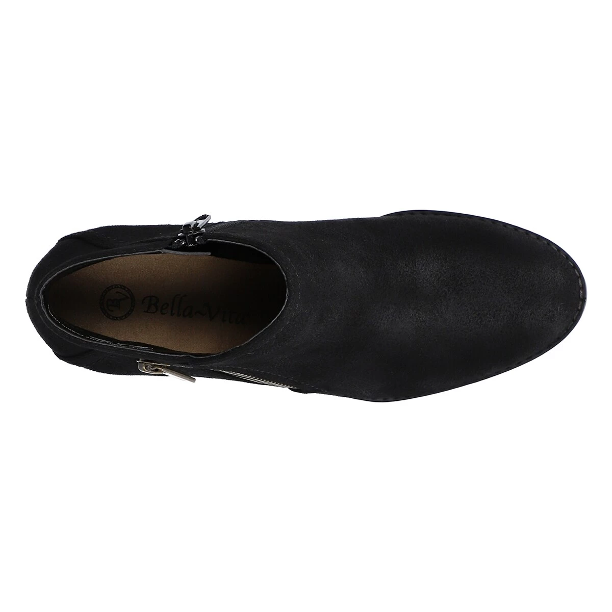 The Womens Bella Vita Bobbi ankle boots showcase an asymmetrical zipper design detail with a block stacked heel. Made of a fabric upper and lining with the thermoplastic outsole and padded insole. Pair with jeans or a midi skirt with the detailed accents and side zipper these booties are for anything.Also available in Narrow and Wide Widths.