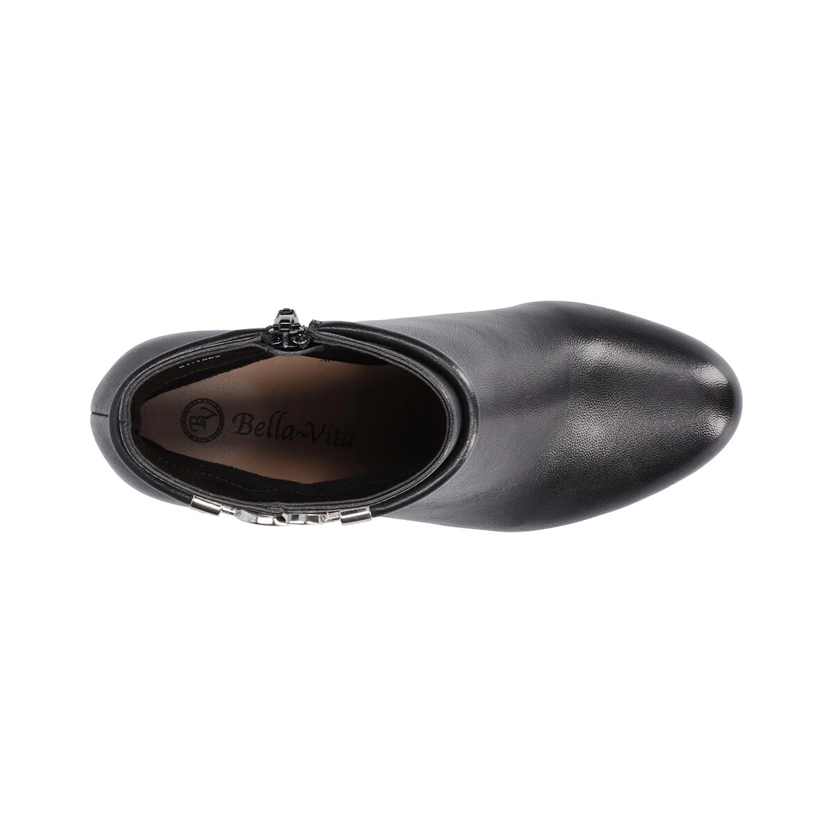 These Womens Bella Vita Diaz Leather Ankle Boots are a nod to 1970s styling. This mod-looking boot is a classic with a small subtle chain-link ornament. Just enough of a heel and a roomy toe, this boot was designed with comfort in mind as well.