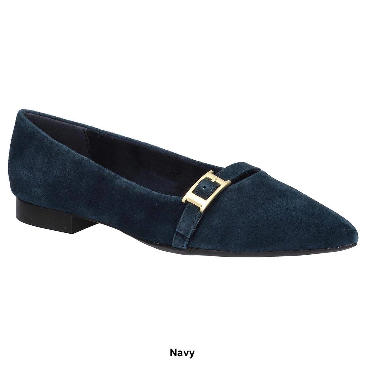These Womens Bella Vita Evanna pointed toe suede flats have a chic fashion twist. Padded heel to toe for all-day comfort, this style is designed to be timeless. The strap buckle detail across the vamp adds sophistication to your outfits.