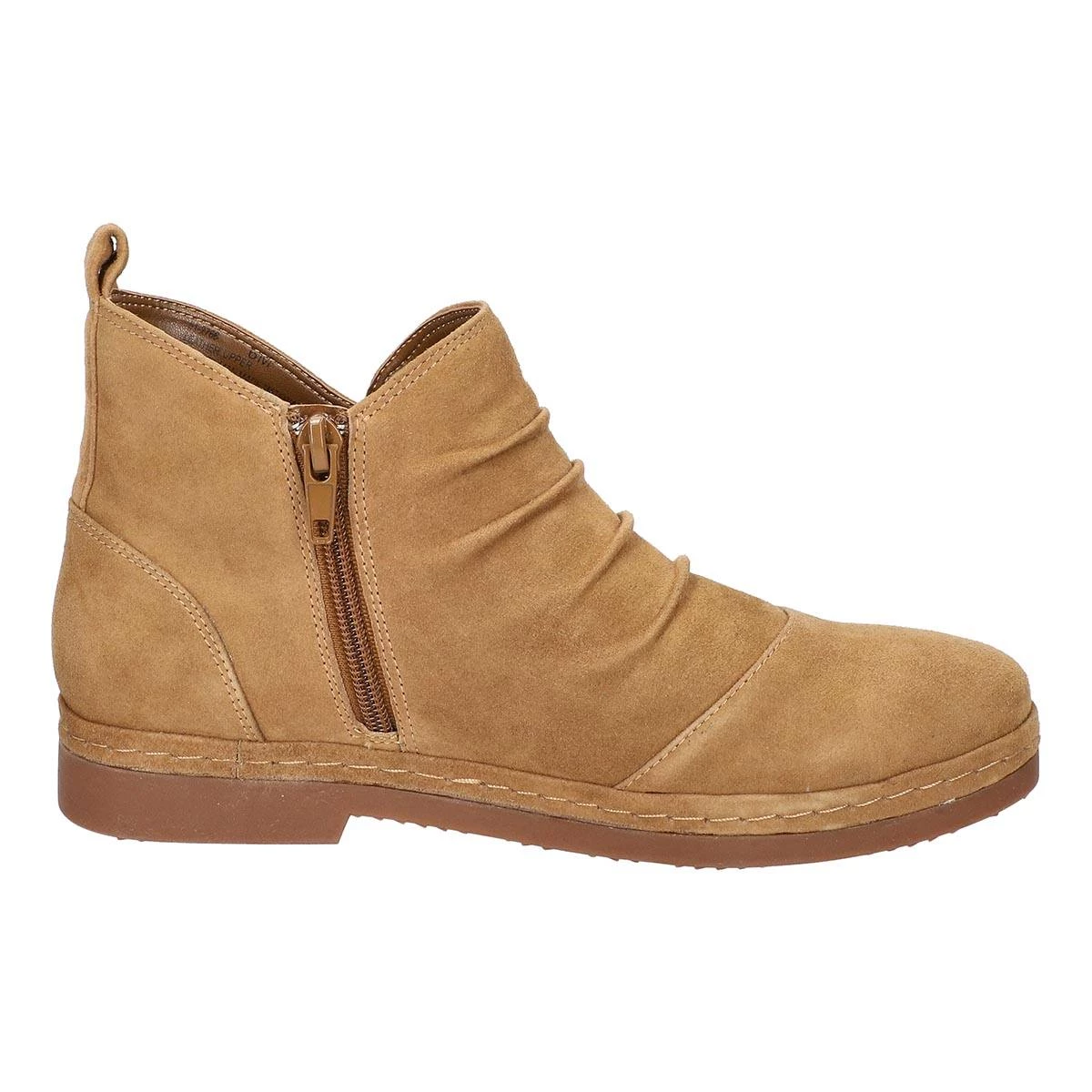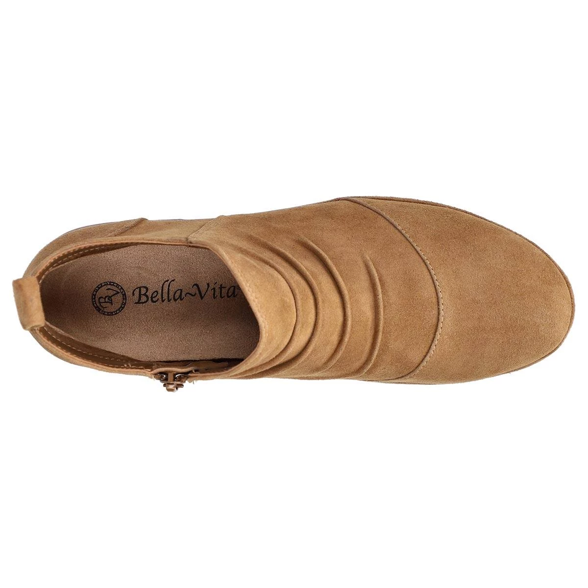 Be on trend and keep comfortable with these Womens Bella Vita Raquel ruched suede ankle boots. The leather ruched upper, and low heel make this a must-have. The padded insole will give you all you need to take on the day! Designed with an inside zipper closure and pull tab to create an easy-on experience.