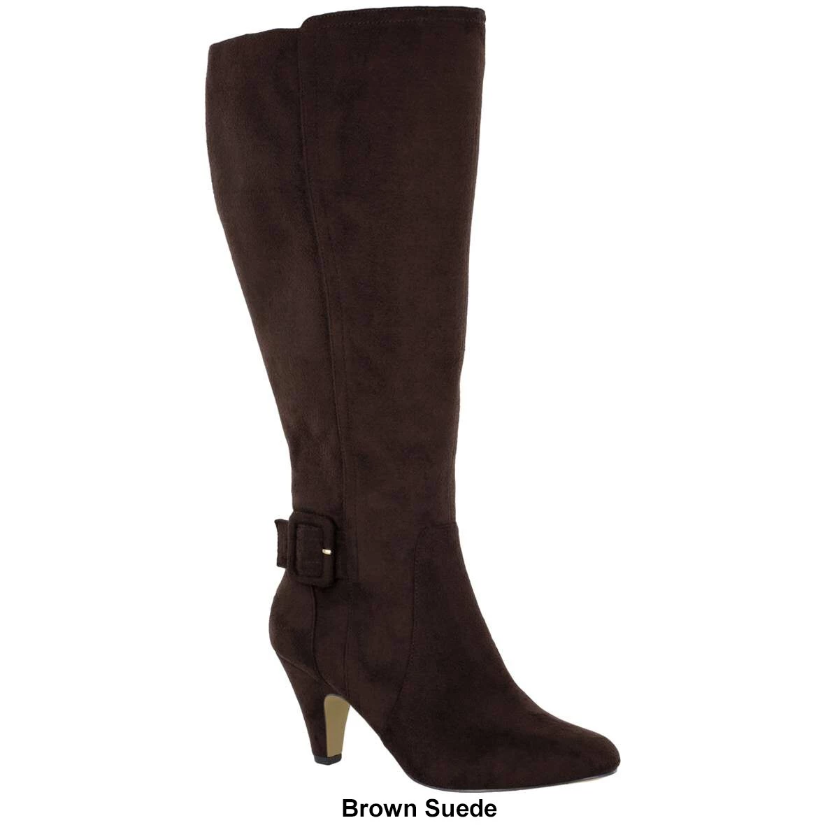 These Womens Bella Vita Troy II tall wide calf boots feature chic suede uppers with buckle strap detail, and an elastic finger gored topline. They include an inside zipper, microsuede lining, padded insoles, PU sock lining, durable rubber blended outsoles, and a self-covered heel.Also available in Wide Widths.