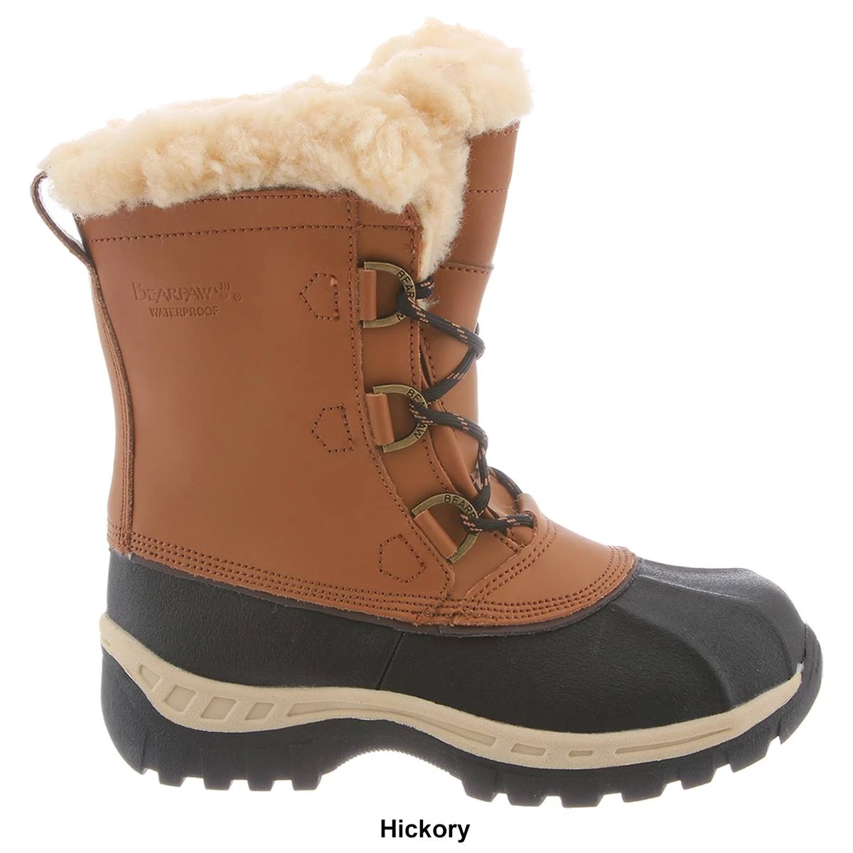 The Big Girls BEARPAW® Kelly mid-calf duck boots offer an action leather and synthetic upper with a TPR outsole. These stylish boots feature a D-ring with round nylon lace, wool blend and fleece lining, comfort sheepskin footbed, and waterproof construction.