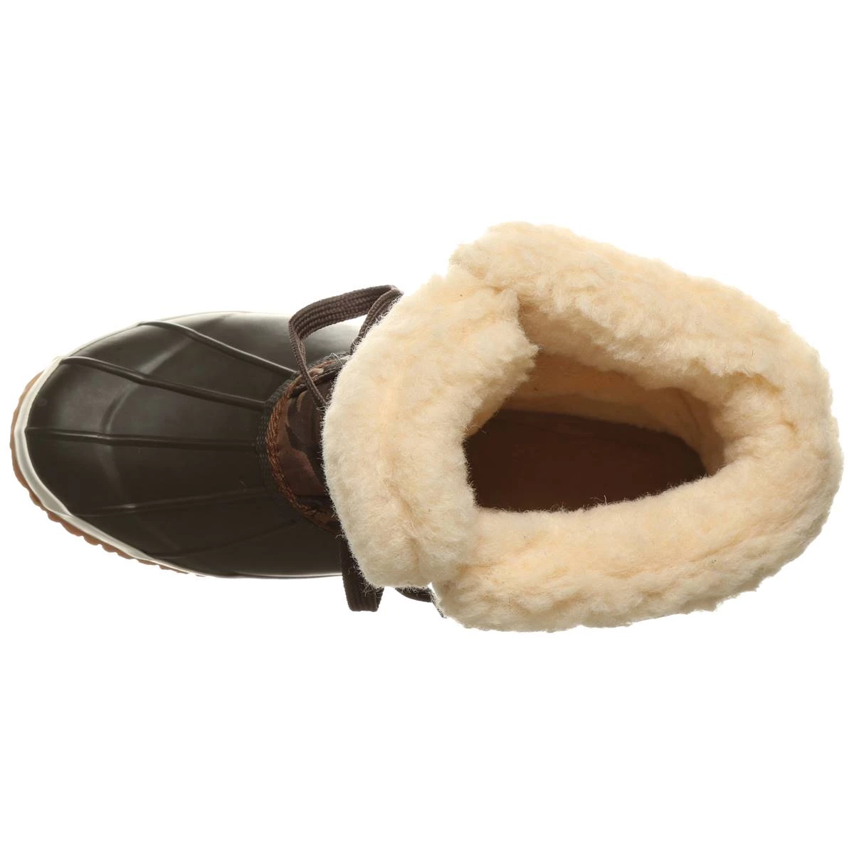 Stay warm and stylish in these Womens BEARPAW® Diamond mid-calf boots. Featuring a woolblend collar with nylon and cow suede upper, flat cotton lace, woolblend lining, removable sheepskin footbed, and rubber outsole. Treated with NeverWet® technology to keep your feet warm.