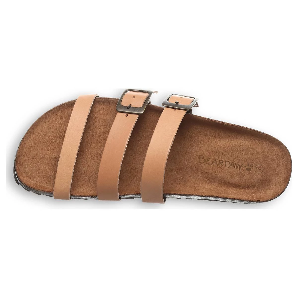 Walk in style with these Womens BEARPAW® Mercedes slide sandals. Featuring a hand burnished leather uppers, suede sockliner, EVA cushioned Footbed, cork midsole, and rubber outsole.
