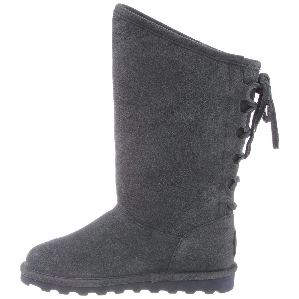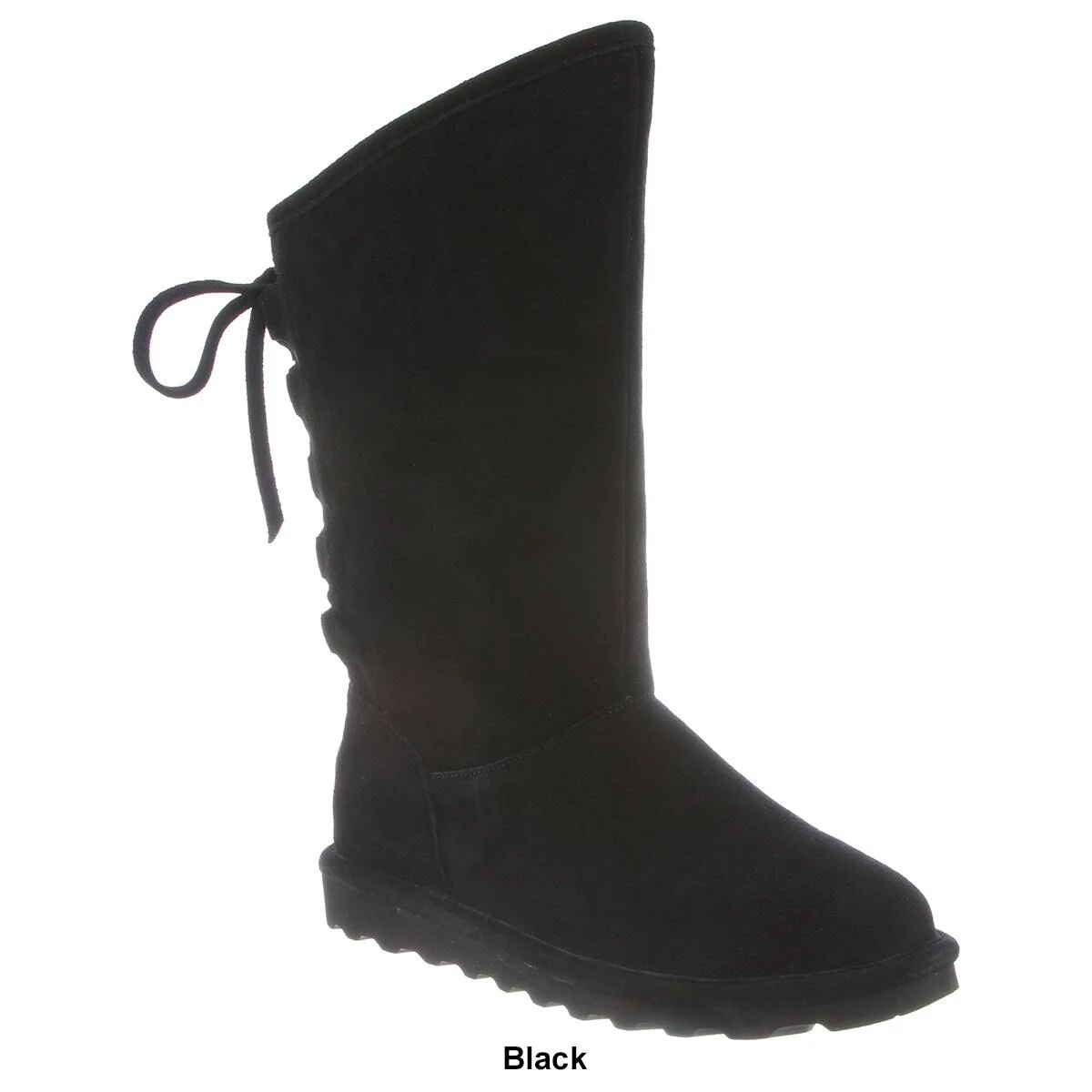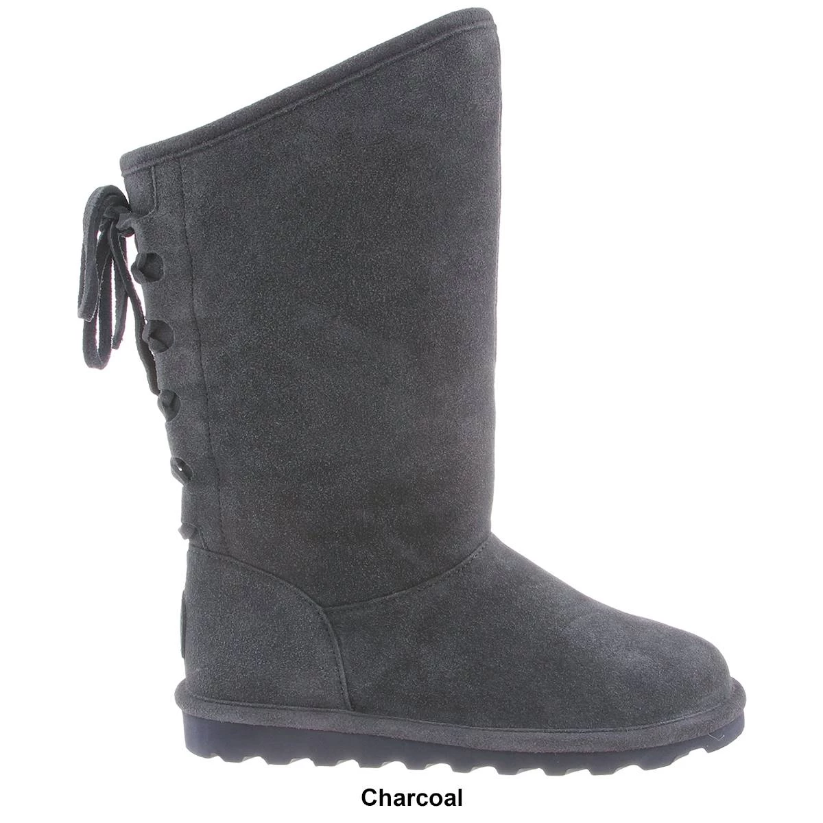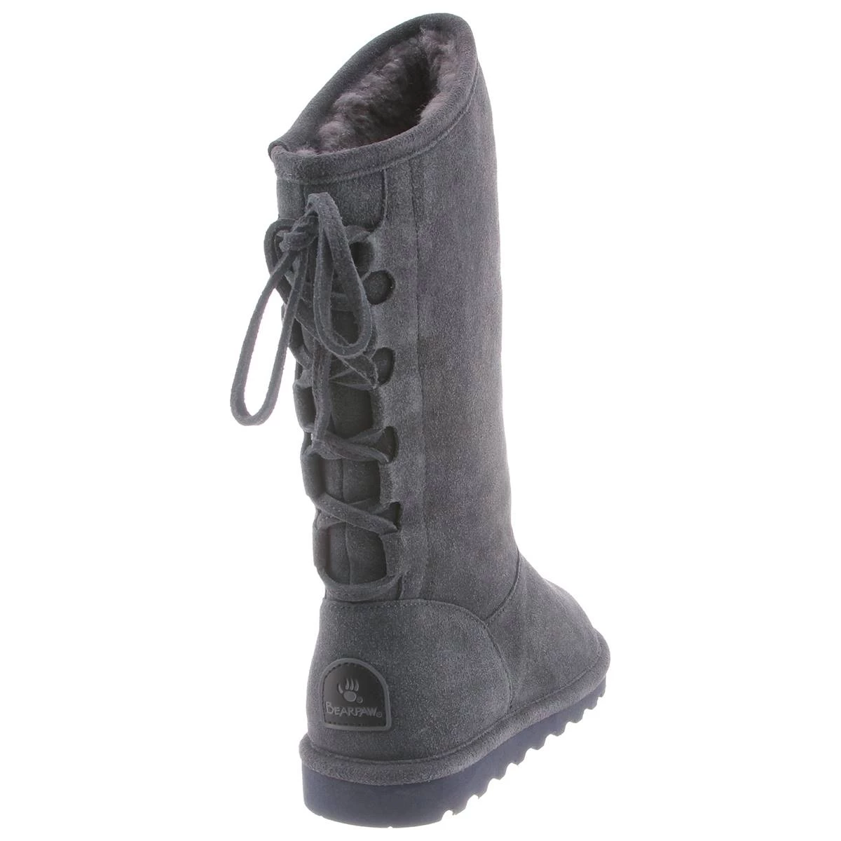 Walk in style with these Womens BEARPAW® Phylly Tall Boots. Features include a cow suede upper, a ghillie lace-up back detail, and an angled top collar bringing added style to your feet. Treated with NeverWet® technology for extra protection from the elements. With a wool blend lining, sheepskin footbed, and lightweight rubber outsole for a comfortable fit.