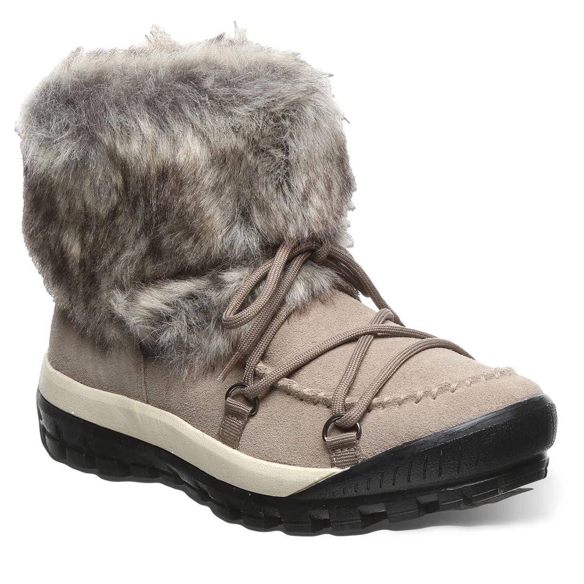 These Womens BEARPAW® Tahoe Marilyn fur winter boots are functional and FURocious! Features a notched rubber sole that hangs onto any surface, no matter how slick. From snowy trails to rainy city sidewalks, these boots have everything you need from a plush lining and footbed to keep you warm and supported, to a flashy Faux Fur coat to show off your style.