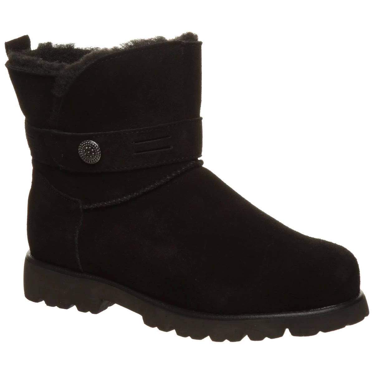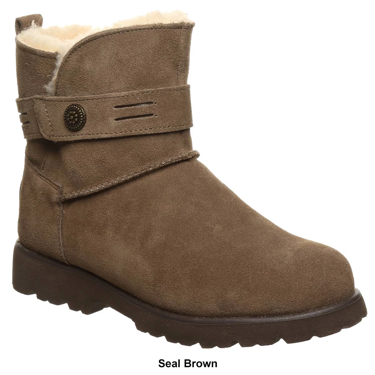 These Womens BEARPAW® Wellston mid-calf boots feature a cow suede upper and split collar with a cow suede strap with a slotted accent. Pair them with your favorite winter denim or a cute dress.